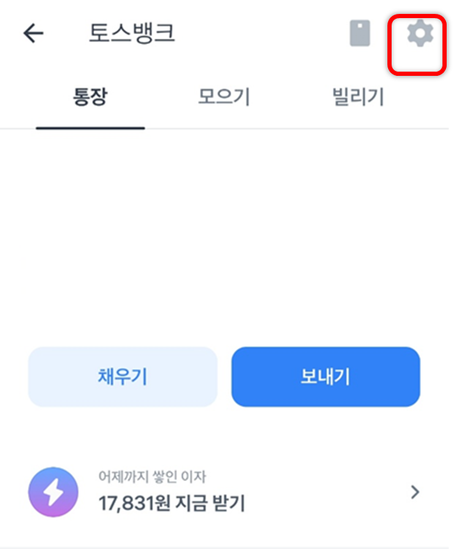토스 앱에서 토스뱅크 통장을 선택해 줍니다.