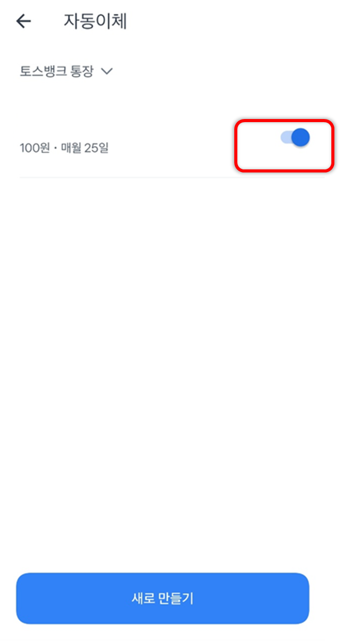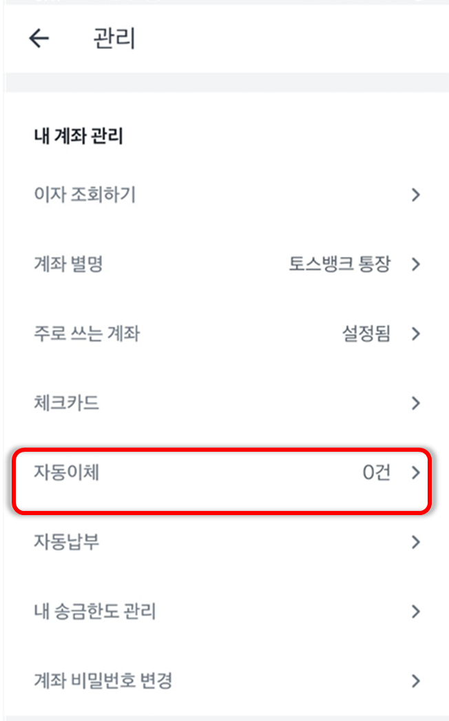 바로 이 기능을 활용하여 토스뱅크로 자동이체를 할 수 있습니다.