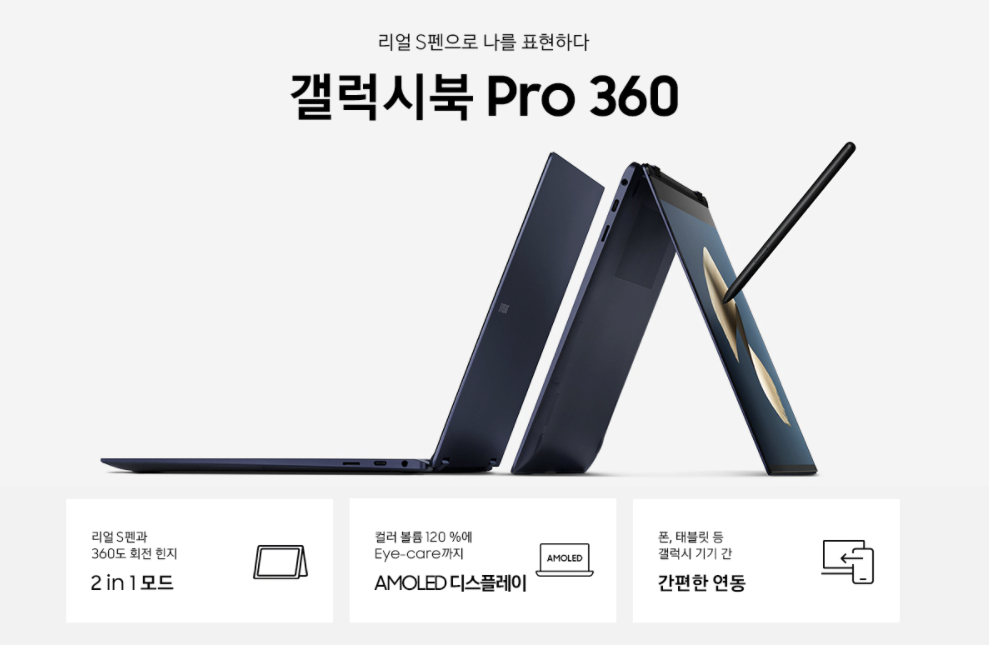 - 갤럭시북 프로는 AMOLED디스플레이와 2 in 1 컨버터블 모드로 많은 인기를 끌었는데요. 이러한 점이 반영된 것 같습니다