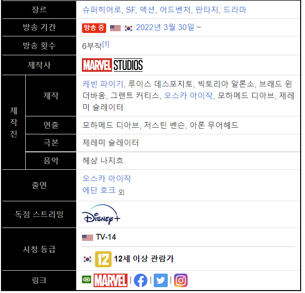 22년 3월 30일 1화가 공개되었으며, 디즈니+에서 독점작으로 공개하였습니다.