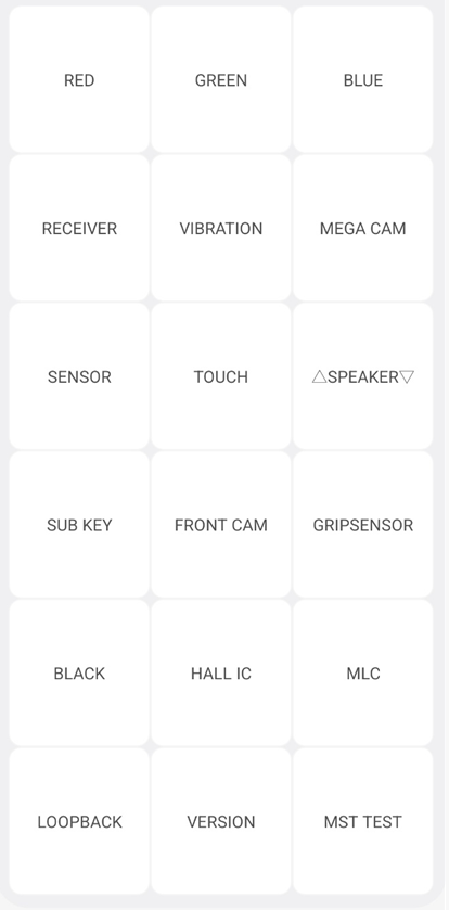 | *#0*# : 디스플레이, 터치 센서, 물리 키 등의 테스트 모드. *#1234# : AP[5], CP[6], CSC[7]를 확인할 수 있는 메뉴. *#9900# : SYSDUMP. 시스템의 배터리 용량 리셋이나, 램 비우기 등이 있는데, 아무거나 잘못 누르면 휴대전화가 재부팅이 될 수도 있고 심지어 고장날 수도 있다. 이것을 수행하면 게임이 빨라진다는 소문이 있으나, 실제로 해보면 별 차이가 나지 않는다. 최근 들어 이 기능을 사용하는 빈도가 늘었는데, 버그 제보에 주요 사용된다. 이 기능을 통해 시스템 로그를 모아 삼성에 전달하여 전문적인 분석을 받을 수 있다. (삼성 멤버스 필요) *#12580*369# : AP, CP, CSC에 더하여 BL[10], 하드웨어 리비전 버전과 RF 캘리브레이션 실시 일자까지 알 수 있다. *2767*3855# : 공장 초기화. 가끔 속도 빨라진다고 낚는 사람들이 있는데, 웬만한 경우가 아니고서는 절대 하지 말자. 하지만 2012년 중순 이전에 빌드된 운영체제에서만 가능하였으며, 그 이후로는 기능 자체를 지원하지 않으니, 이젠 무의미. *123456# : 네트워크 관련 테스트 모드. 319712358 : 한국판 한정 네트워크 및 기타 설정을 변경하는 메뉴. 함부로 변경했다가는 통신이 안 될 수도 있다. 이 때문에 이 모드는 비밀번호가 걸려있는데, SKT/단말기 자급제는 996412, KT는 774632, LG U+는 0821이다. *#0011# : 해외판 한정 네트워크 및 기타 설정을 변경하는 메뉴. 마찬가지로 이 모드는 비밀번호가 걸려 있다. 국내판에서는 *123456#과 같은 기능을 한다. *1232580# : LTE/3G 모드 선택(SKT 전용, T 모양) *147359# : LTE/3G 모드 선택(KT 전용, K 모양) *#15987# : Samsung Experience 8.1 이상 - Reddish 조절(분홍분홍), 재부팅 이후 값이 적용됨 (+30012012732+ : 갤럭시 탭 Wi-Fi 모델 전용 테스트 모드. Wi-Fi 전용 모델은 전화 앱이 존재하지 않기 때문에 계산기에서 수행해야 한다. 입력 후 다이얼패드가 나오는데, 이 상태에서 *#0*# 등을 입력하면 각각의 테스트 모드에 진입할 수 있다. 꼭 앞에 괄호를 붙여야 하고, 복사, 붙여놓기로는 작동이 안 되니 꼭 직접 일일이 입력해야 한다. 하지만 갤럭시 A40 기준 복사 붙여넣기로도 된다. 여담이지만 일반 스마트폰 기기에서도 계산기 열고 입력하면 다이얼패드가 나온다. |