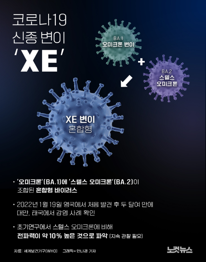 스텔스 오미크론보다 전파력이 뛰어난 것으로 알려진 'XE'변이의 등장인데요.