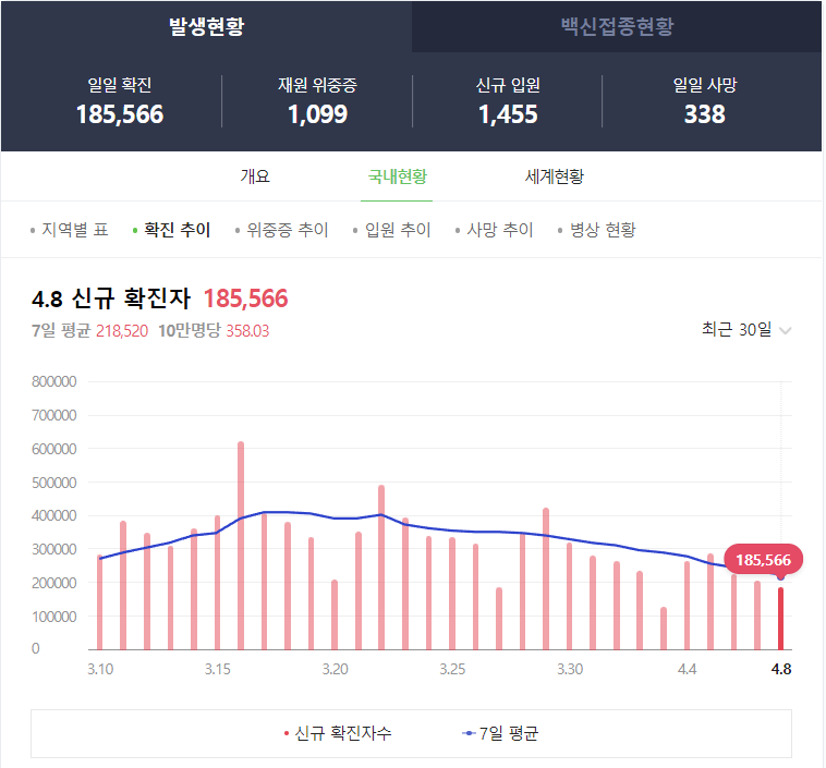여전히 위중증이 1,099명이나 되고 사망자 역시 338명이나 되는 부분은 걱정이 되기도 합니다.