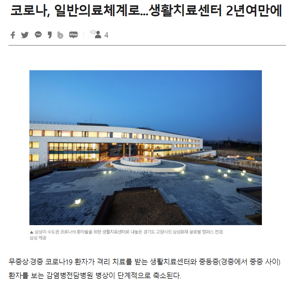 일반의료체계로 변화함에 따라 생활치료센터 역시 2년만에 축소할 예정이라고 합니다.