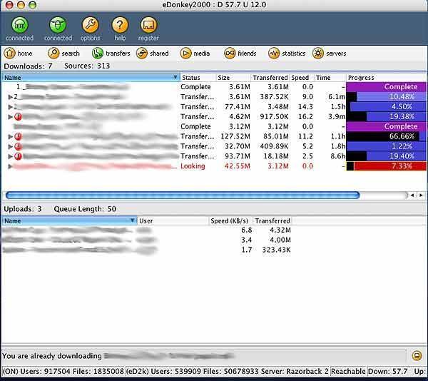 소리바다와 달리 eDonkey는 파일을 분할해서 다운로드 받는 기술이 도입되었습니다.