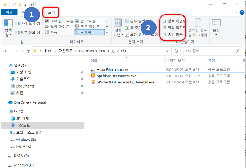 숨김파일 확인하는 방법