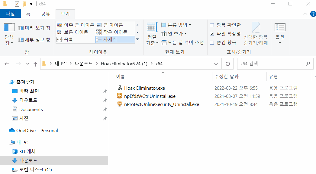 그리고 숨김 속성 이외에 확장자가 안보이는 경우가 있는데요.