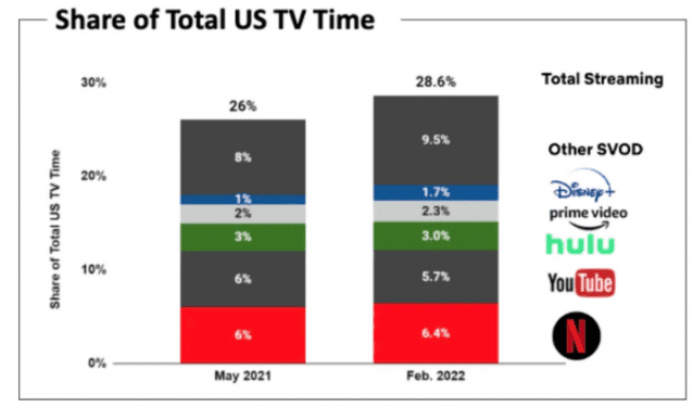 유튜브는 작년 6%에서 소폭 감소한 5.7%로 2위를 차지햇구요. 훌루가 3%, 그리고