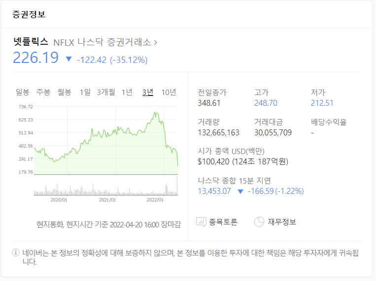 이에 따라 넷플릭스는 연이틀간 계속 주가가 떨어지고 있는데요.