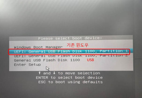UEFI: General USB Flash Disk를 선택해 줍니다.