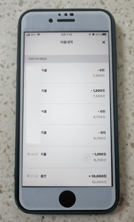 실제로 사용내역을 확인해보면 출퇴근시에 잘 사용한것을 확인할 수 있습니다.