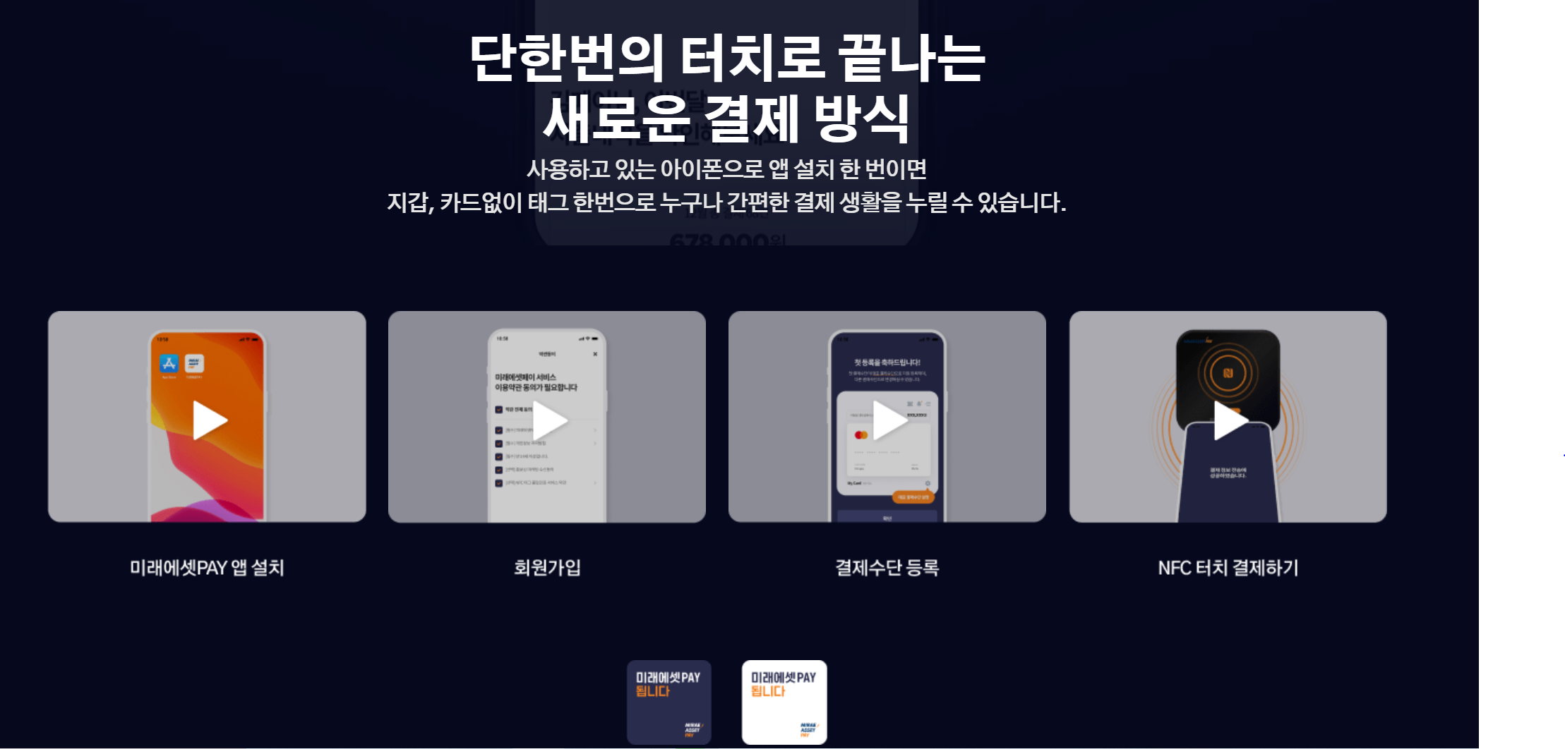 현재 미래에셋페이는 NFC방식 결제 솔루션입니다.