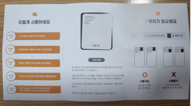 긴 기다림이 끝나고 미래에셋페이 교통카드 스티커가 도착했습니다.