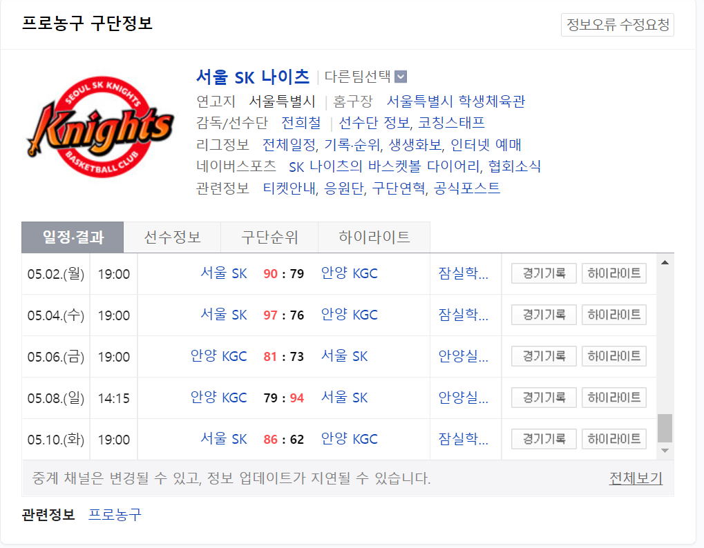 앞으로도 SK나이츠의 선전을 기원하겠습니다.