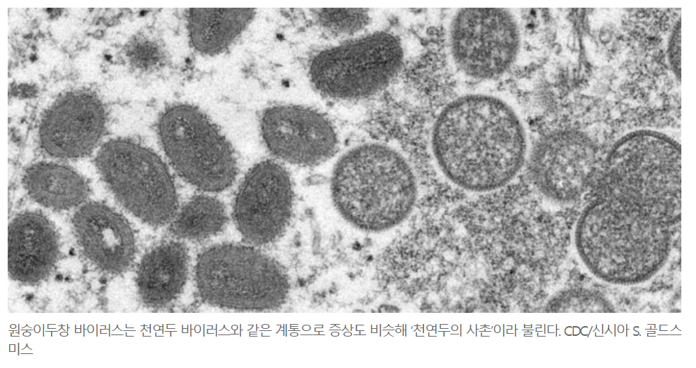 이 '오소폭스바이러스속'에는 원숭이두창 외에도 천연두(smallpox), 우두(cowpox), 낙타두창(camelpox) 바이러스
