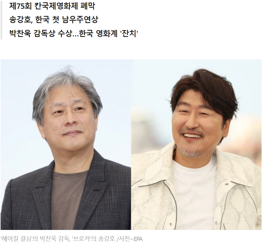 올해 경쟁부문에 진출한 두 편의 한국 영화 '헤어질 결심(박찬욱 감독)'과 '브로커(고레에다 히로카즈 감독)' 팀이