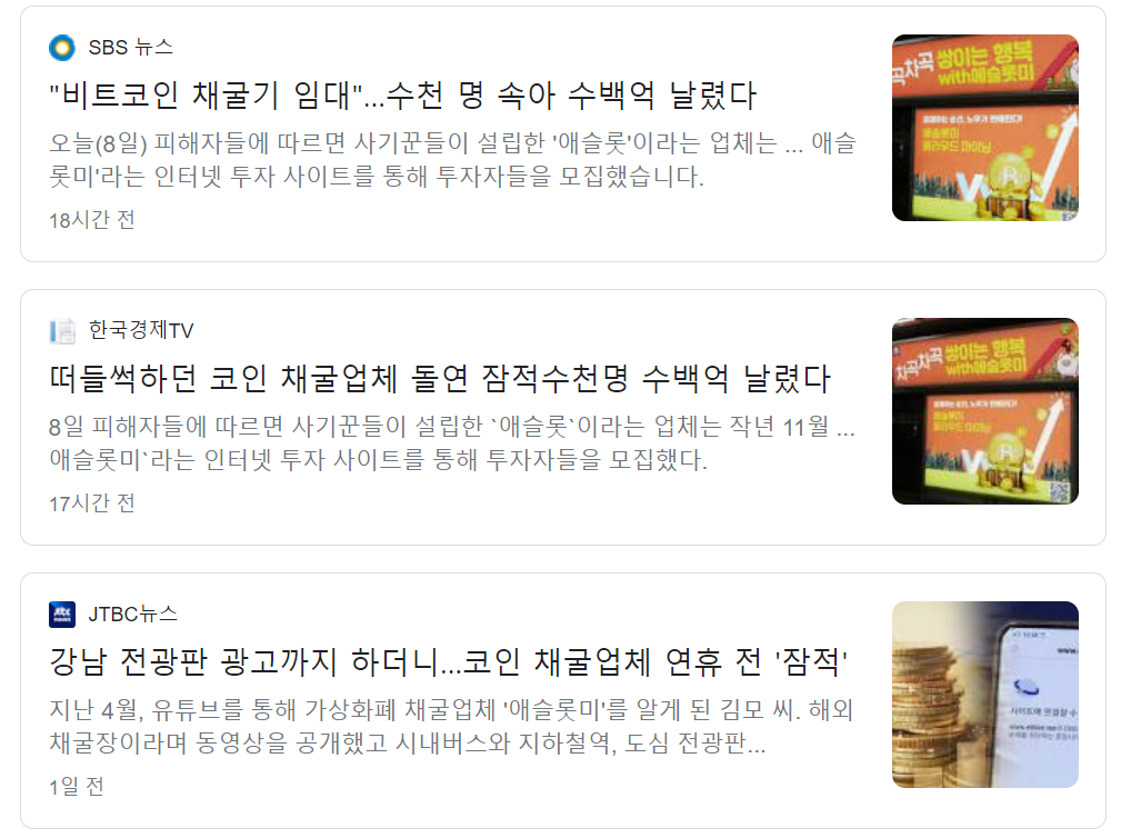 "피해자들의 증거 자료와 증언을 바탕으로 애슬롯이 투자금액에 따라
