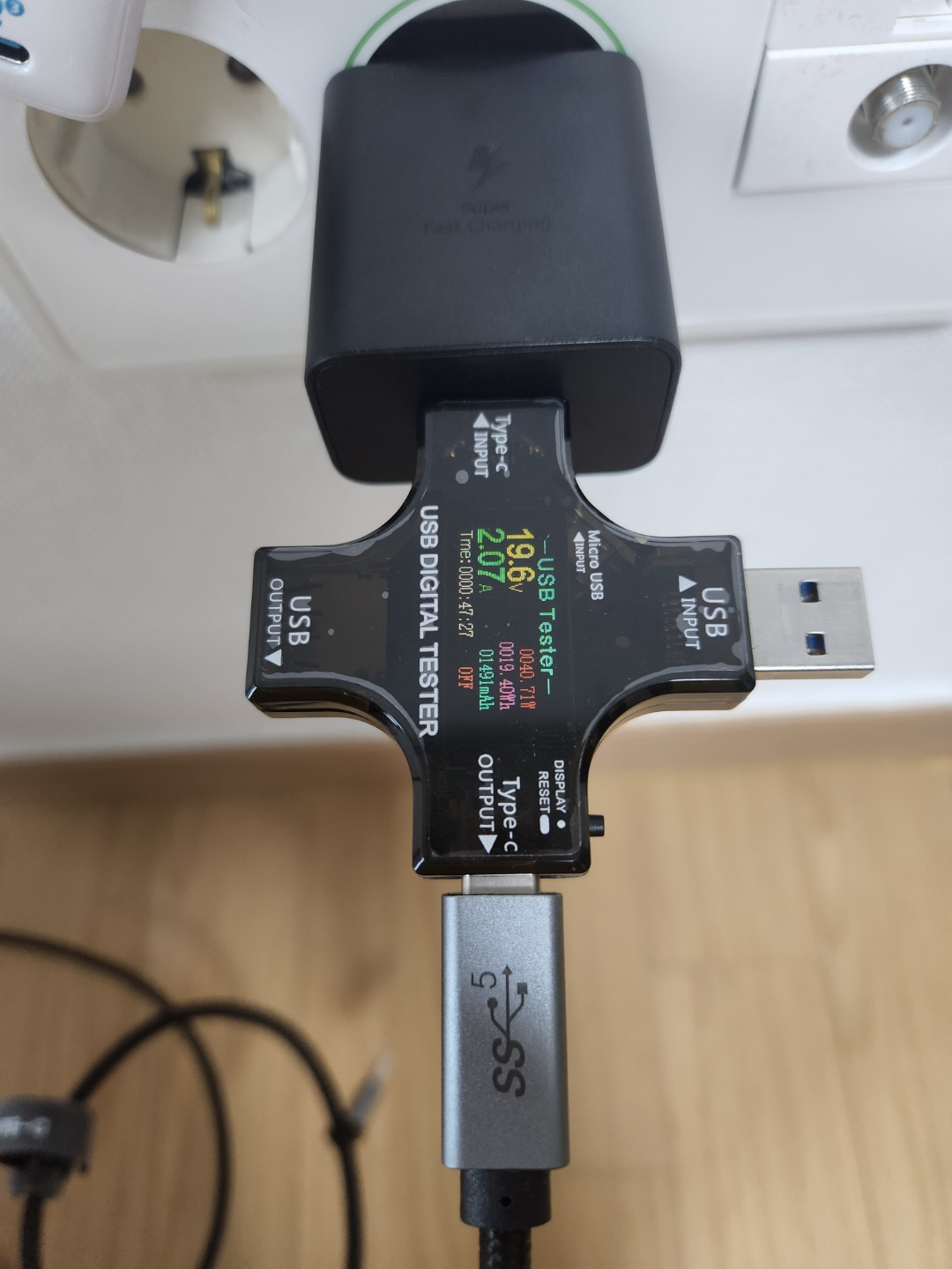 42W 정도로 충전되구요. 타키온 충전기가 거의 20*3A로 61W 정도 충전되는 것과는 조금 차이가 있습니다.