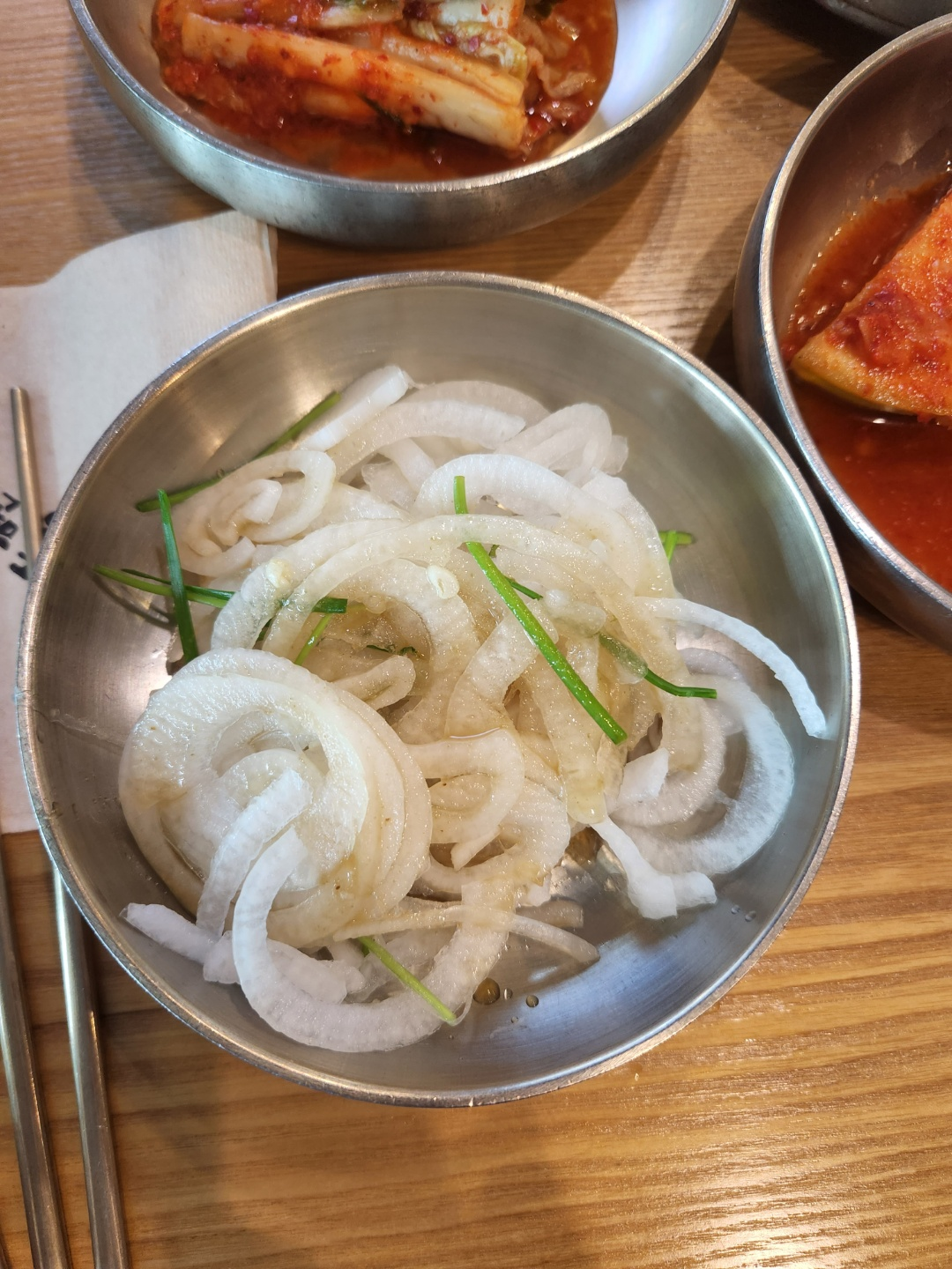 갈비찜과 같이 나오는 양파채랑 먹으면 맛있더라구요.