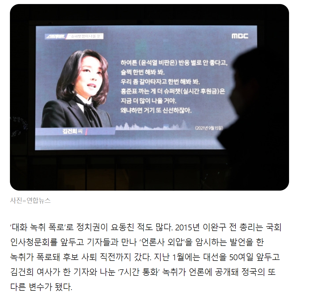 가장 최근에는 김건희 여사의 대화 녹취 폭로는
