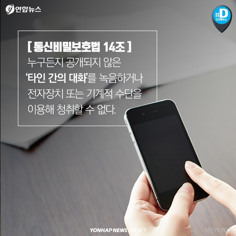 현행법에서는 통신비밀보호법 14조에 따라 공개되지 않은 곳에서 이뤄진 타인 간의 사적 대화를
