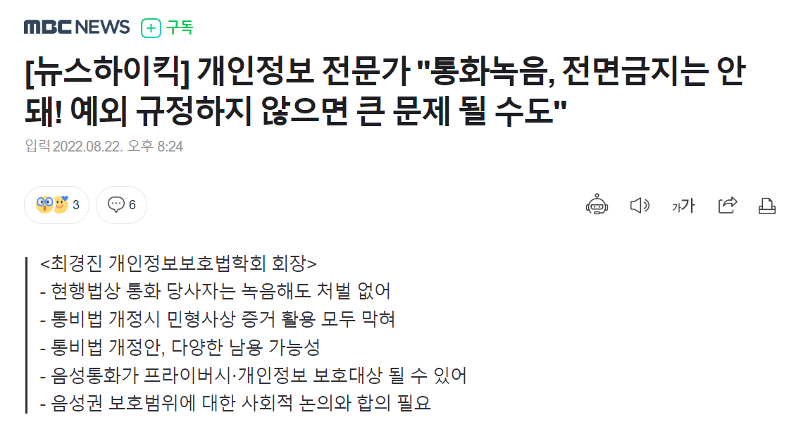 법 개정안이 나오면서 여기저기에서 통화녹음의 금지 관련하여 다시한번 논의가 활발해지고 있습니다.