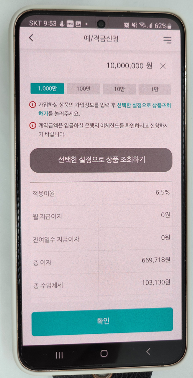이 후 예금 금액을 선택하시어 가입하시면 됩니다.
