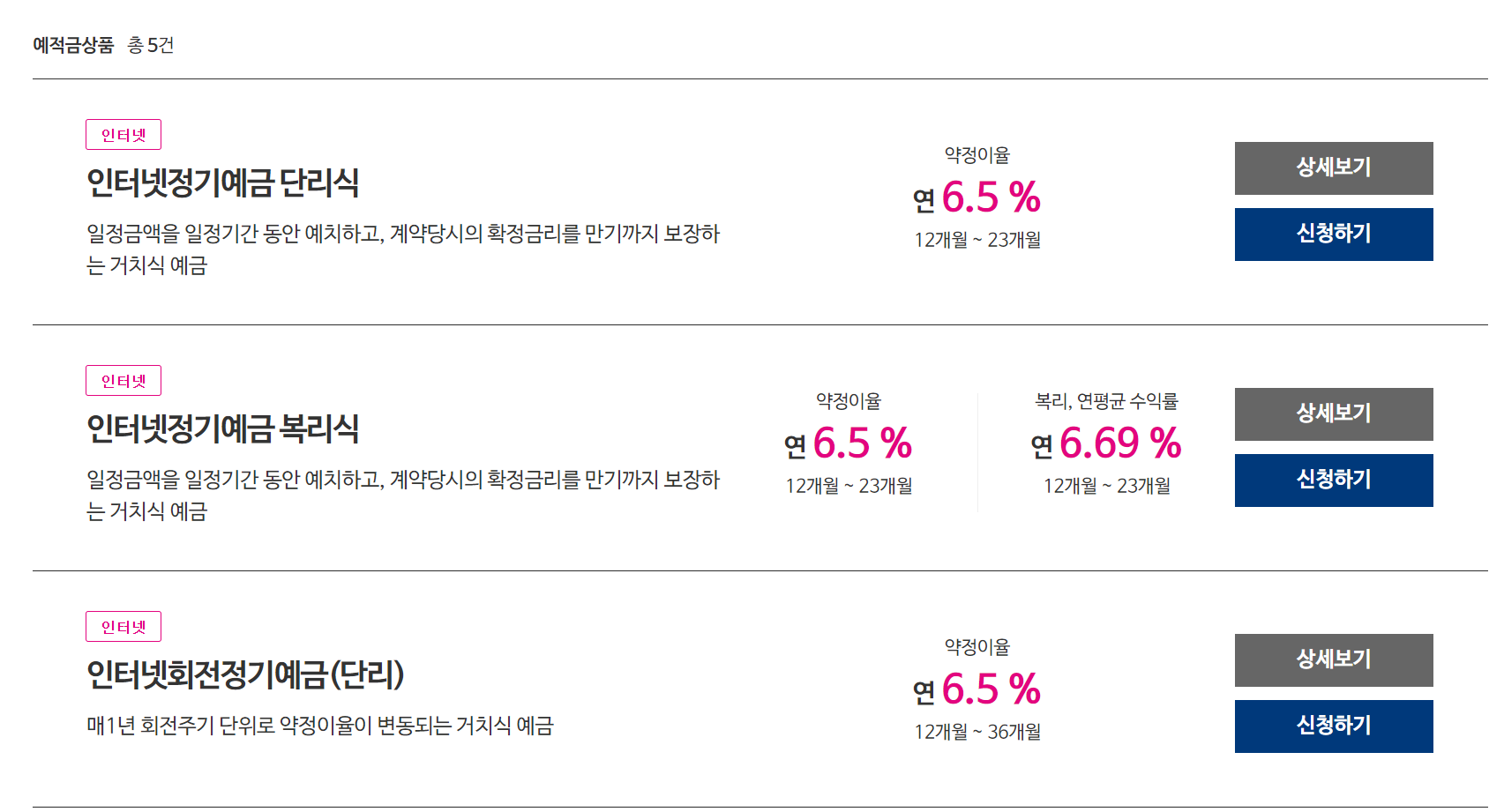 이번에 인터넷정기예금의 금리를 6.5%로 정하였는데요.