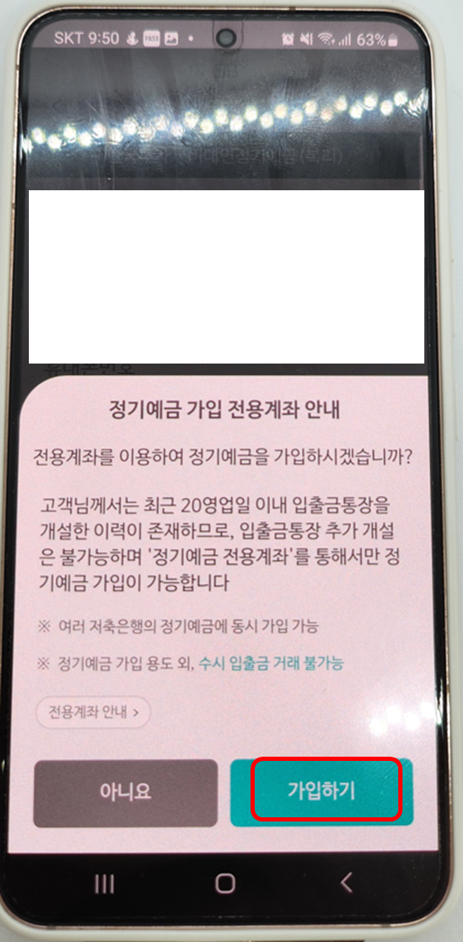 다시한번 정기예금 가입 전용계좌로 가입된다는 안내가 나옵니다.