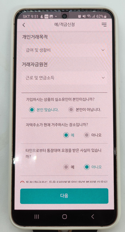 이후 타 은행처럼 은행 계좌 개설을 위한 신분증 촬영등이 진행되구요.