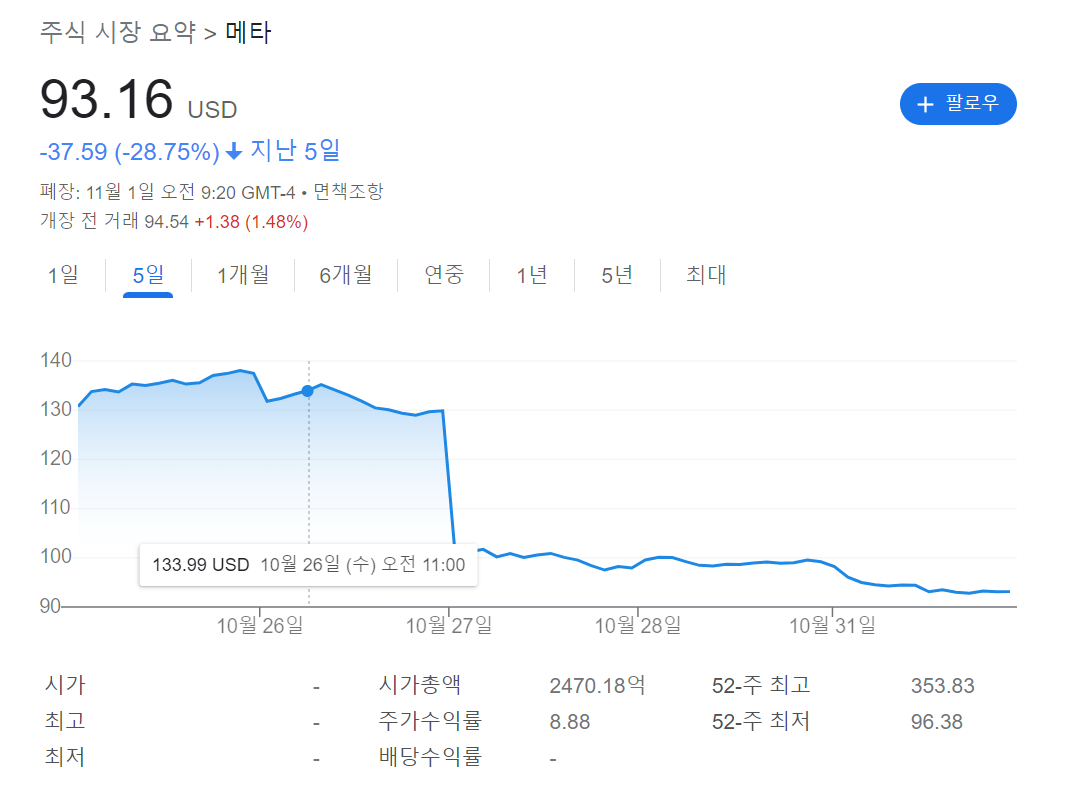 메타의 주가는 최근 엄청난 하락을 하였는데요.