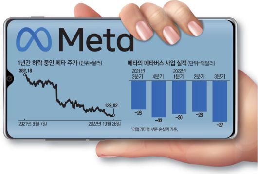 현재 메타의 시총은 이제 전체 시총 1위 애플(2조3270억달러)의 9분의 1 수준에 불과하며,