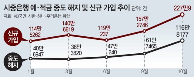 실제로 예금 금리가 높아지면서 올해초 1월에는 신규가입자가 114만, 중도해지자가 40만에 불과하였지만