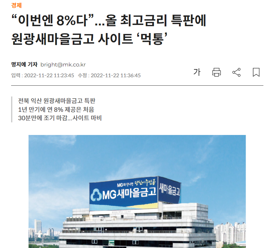 저의 경우도 어제 원광새마을금고의 특판을 익히 알고 있었지만 가입하지 못했습니다.