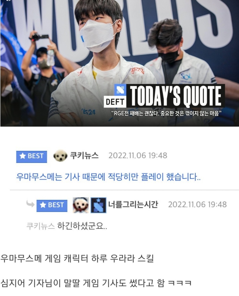 올해 진행된 롤드컵에서 언더독의 기적을 이룬 DRX의 데프트의 기사 요약본에 나온 말입니다.