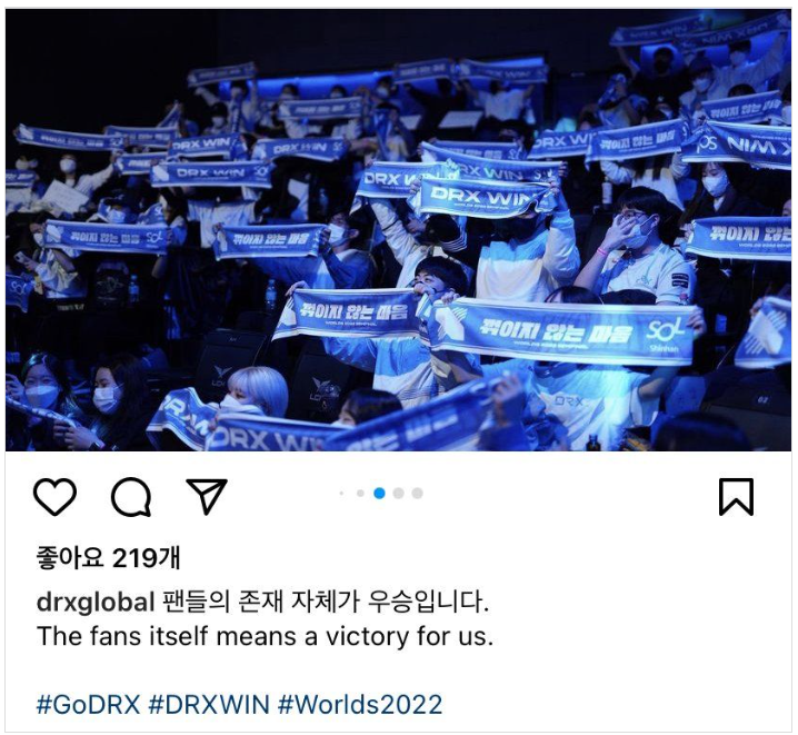그리고 DRX는 해당 문구를 공식 응원 문구로 지정하기도 하였습니다.