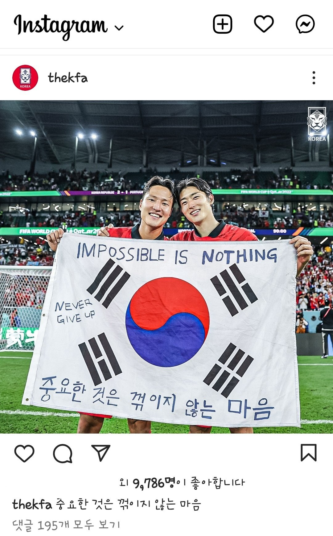 그리고 오늘 한국 축구협회 인스타에 포스팅이 됩니다.