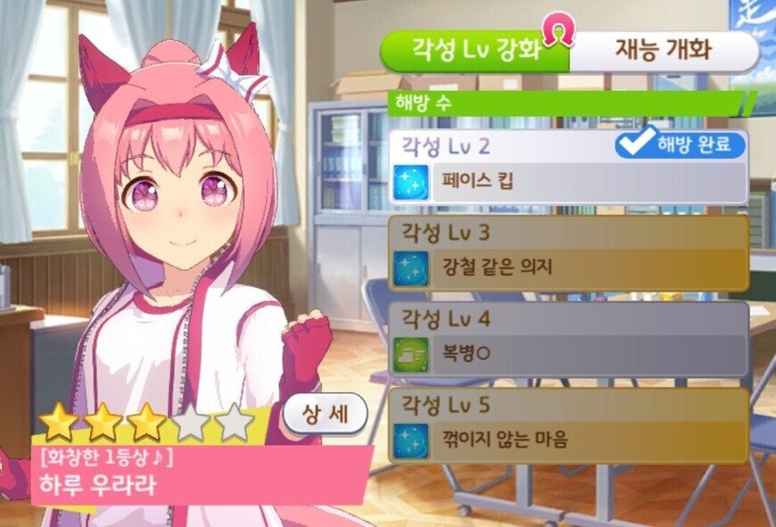 이 꺽이지 않는 마음은 일멸 말딸이라고 불리우는 우마무스메의 캐릭터 하루 우라라의 스킬명이라고 합니다.