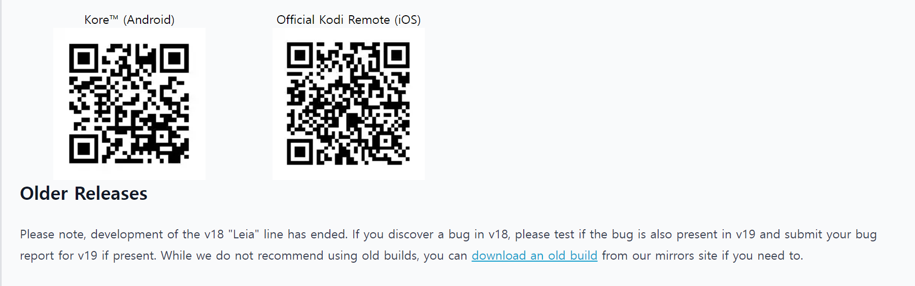 코디 공홈에서 먼저 구형버전을 다운 받습니다.