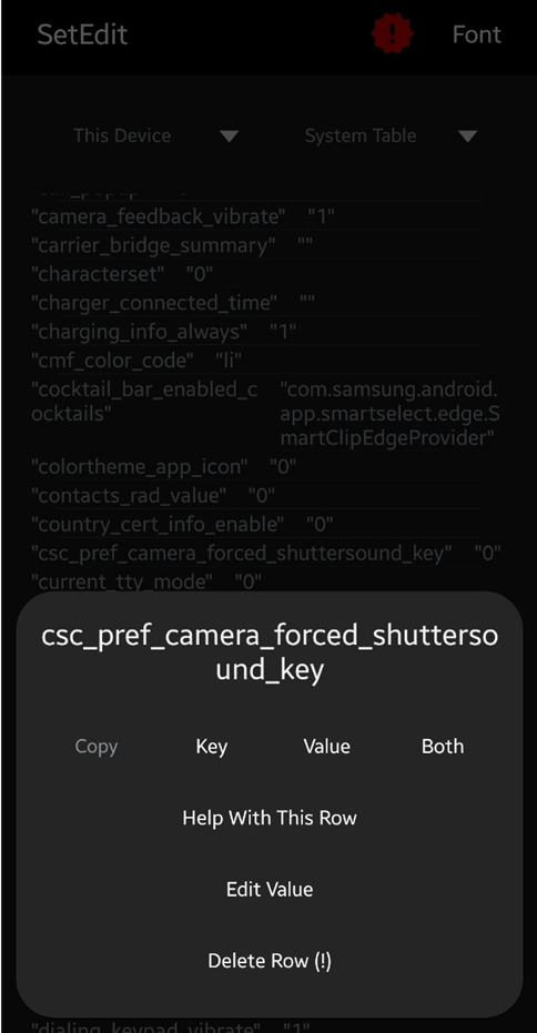 csc_pref_camera_forced_shuttersound_key 값을 0으로 변경하면 되는데요.