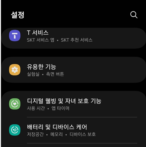 그리고 설정 - 배터리 및 디바이스 케어 가셔서 설정을 할 것이 있는데요.