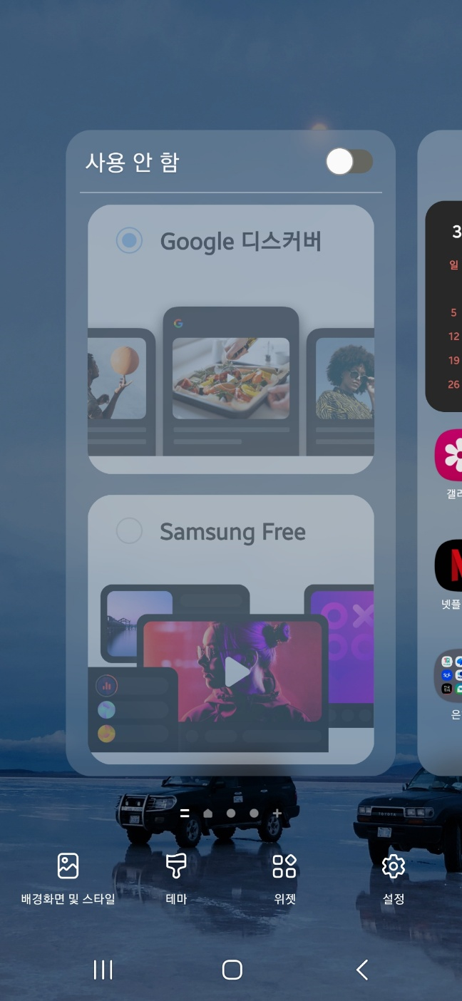 구글 디스커버는 홈화면을 꾹 눌러 설정에서 삭제할 수도 있구요.