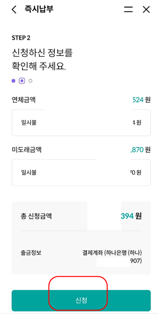 연체금액의 경우 연체료가 일할로 추가됩니다.