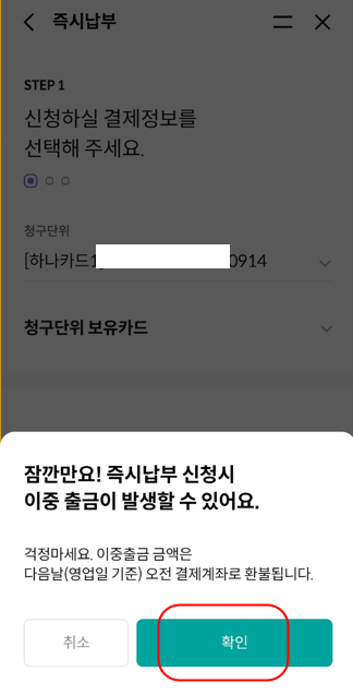 이런 내용을 확인하시고 즉시납부를 선택하시면 되는데요.