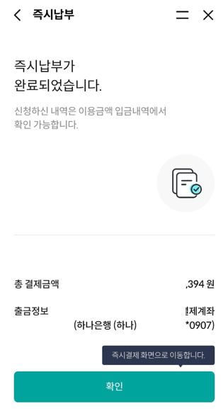 마지막 확인을 하시면 즉시납부가 완료됩니다.