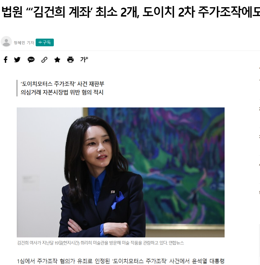1심에서 주가조작 혐의가 유죄로 인정된 ‘도이치모터스 주가조작’ 사건에서 윤석열 대통령 부인 김건희 여사와