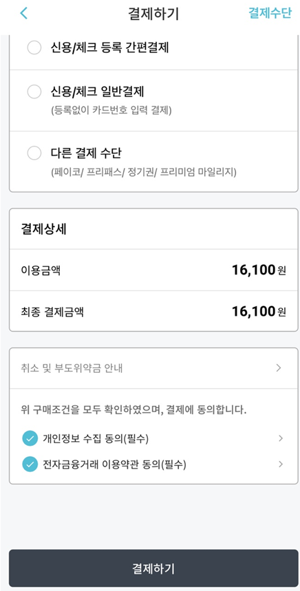 결제 수단 선택후 결제하시면 예매가 모두 완료됩니다.