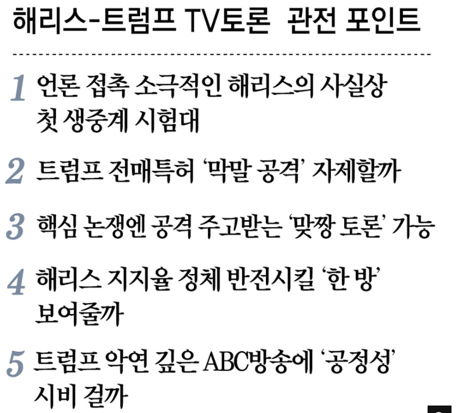 해리스와 트럼프의 미국 대선 토론회가 어제 진행되었습니다.