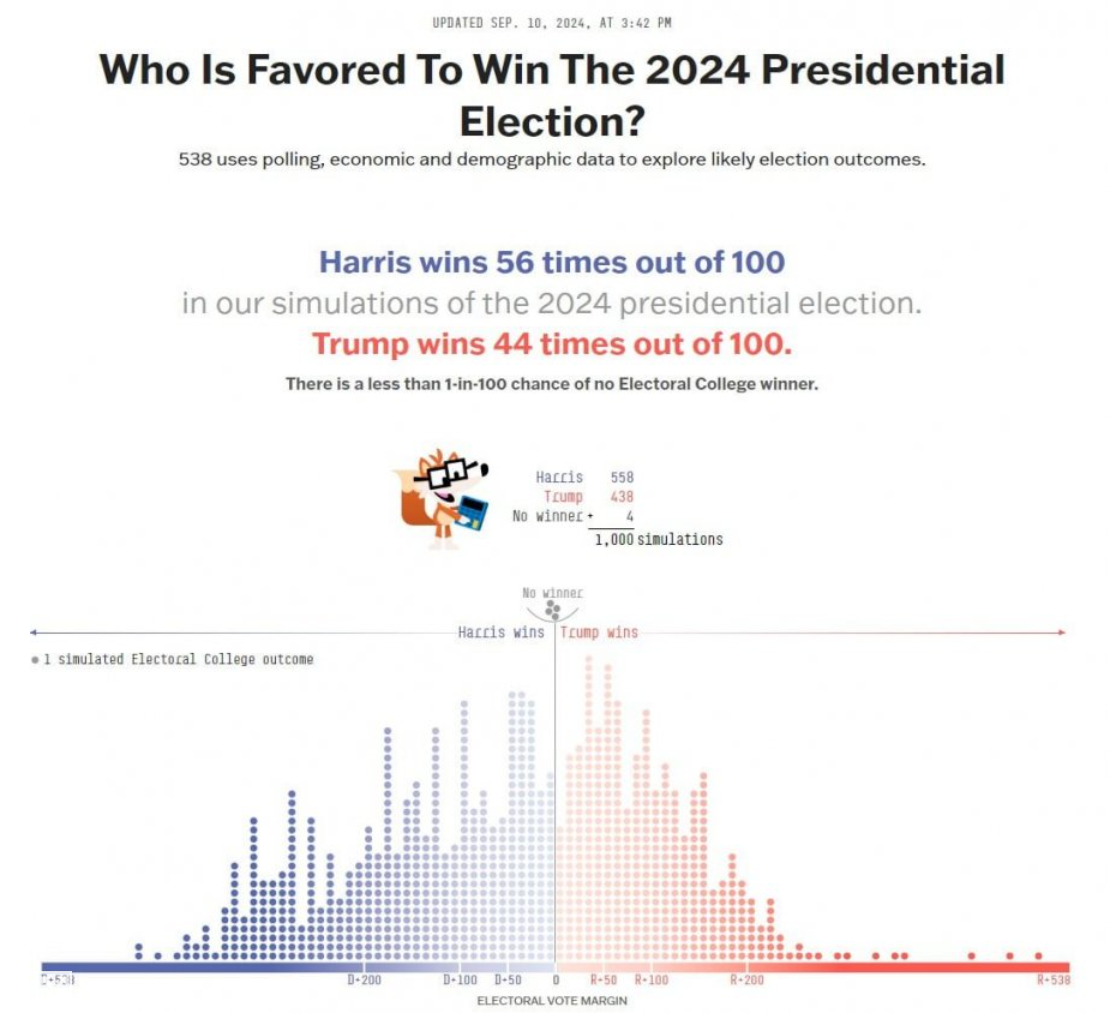 토론 직후 올라온 선거 승리확률에서도 확실히 해리스가 앞서가는 모습입니다.