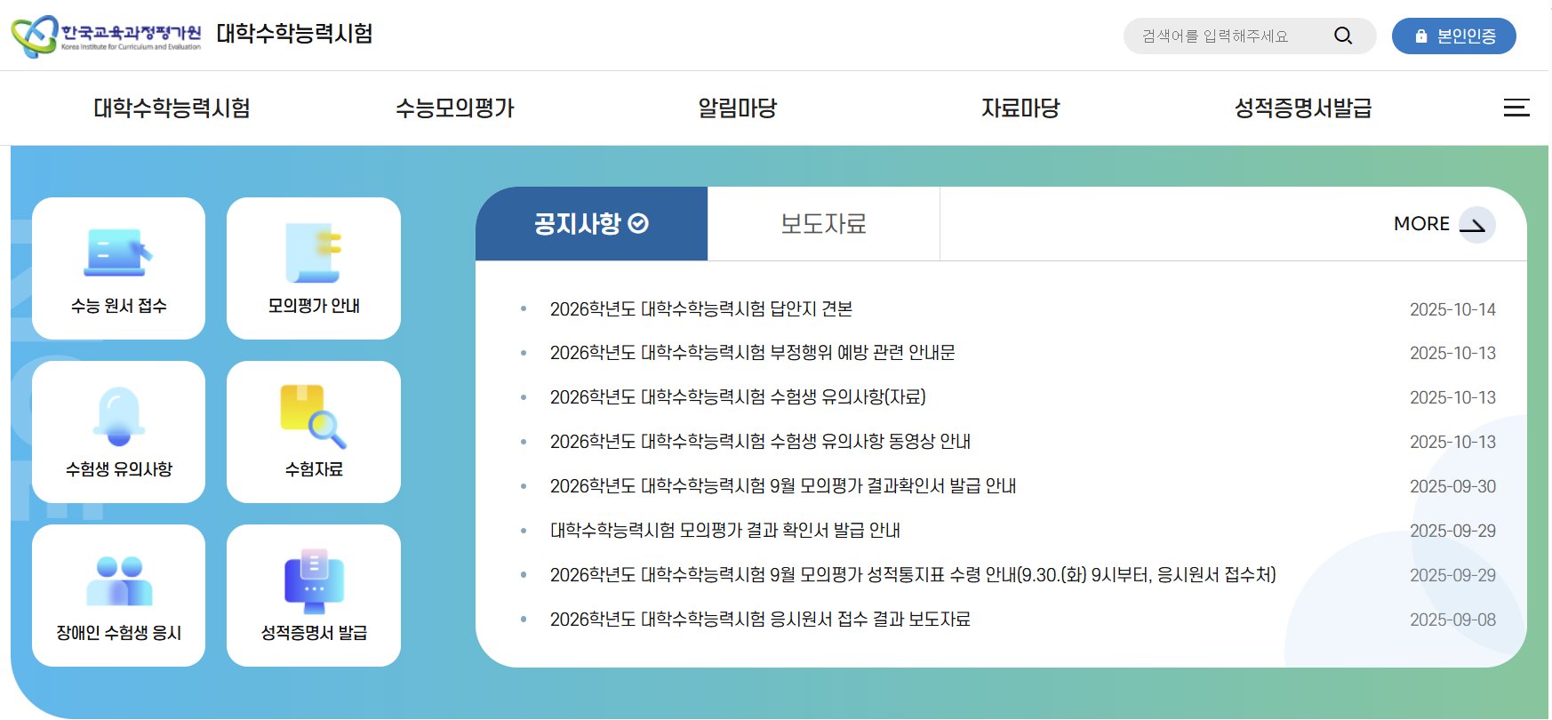 2026년 수능 영역별 시험문제와 정답 공개 시간은 중증 시각장애 수험생의 시험이 끝난 뒤 한국교육과정평가원 홈페이지에서 확인할 수 있습니다.